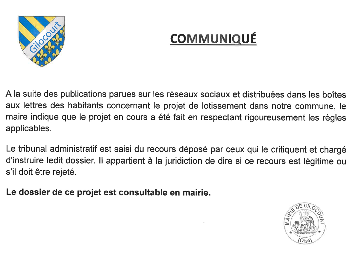 ▶ A la suite des publications parues sur les réseaux sociaux et distribuées dans les boîtes aux lettres des habitants concernant le projet de lotissement dans notre commune, le maire indique que le projet en cours a été fait en respectant rigoureusement les règles applicables.